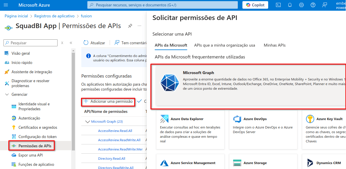 Configurações do Entra ID (Azure AD) no Squad BI:
