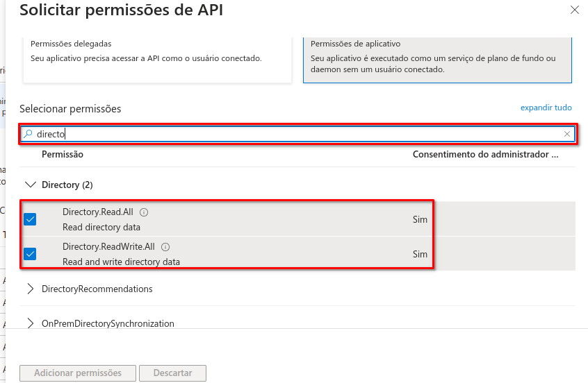 - 🔑 Directory.ReadWrite.All → Acesso total para ler e modificar os dados do diretório.