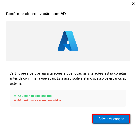 Ao realizar a sincronização no Squad BI, o sistema compara os usuários do Azure AD com os do ambiente atual.