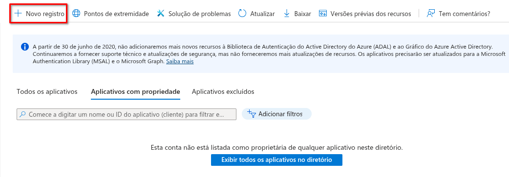 Esta aba é dedicada às configurações de integração com o Azure Active Directory.