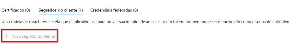 No menu lateral do aplicativo, clique em Certificados e segredos.Selecione Novo segredo do cliente.