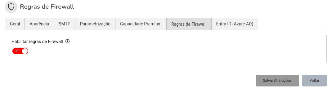 As regras de firewall são essenciais para proteger a plataforma contra acessos indesejados e garantir a segurança dos dados. Abaixo, você encontrará uma descrição detalhada das opções disponíveis para configuração, permitindo que você personalize as regras de acordo com suas necessidades.